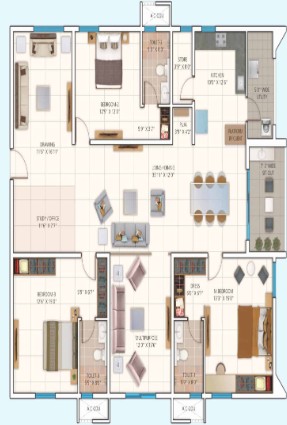 V3F drive high speed Lifts of Reputed make. Lift lobby cladding with vitrified tiles /granite.