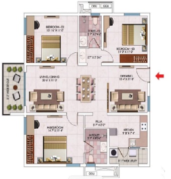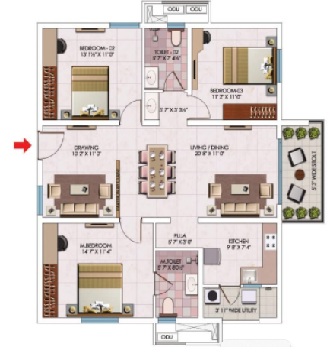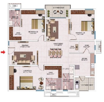 DRAWING, DINING, LIVING, BEDROOMS, KITCHEN AND BALCONY: Smoothly finished with putty and acrylic emulsion paint of reputed brands.