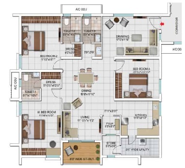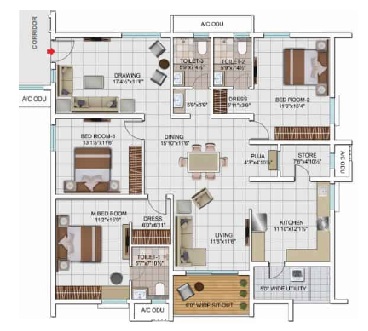 External Finishing: Texture finish & two coats of exterior emulsion paint of reputed brands with architectural features.