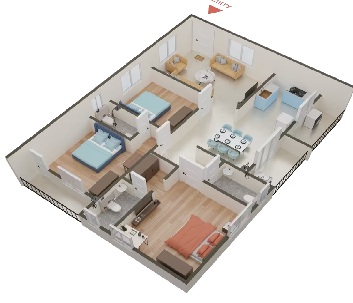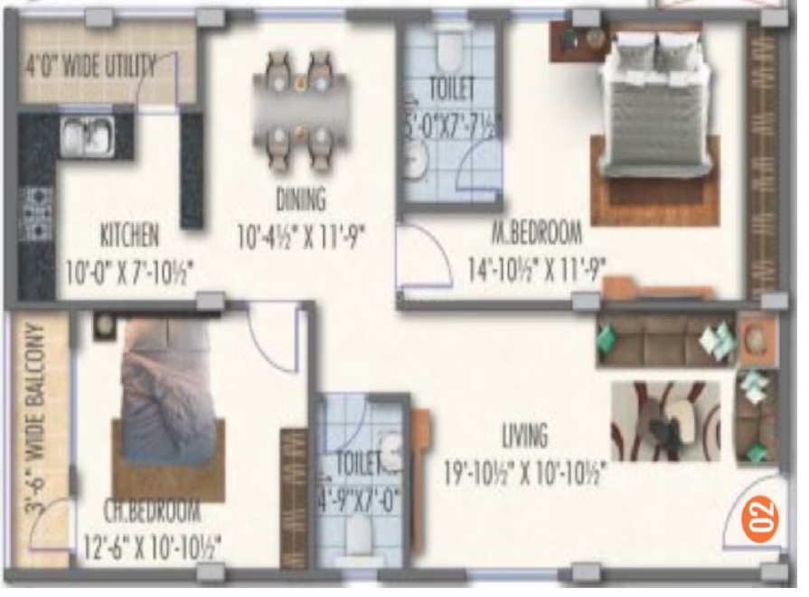 Drawing, Dining, Living: 600×1200 mm & for Bedrooms, Kitchen: 600×600 mm size Double Charged Vitrified Tiles of Reputed brands of ISI Standard make.