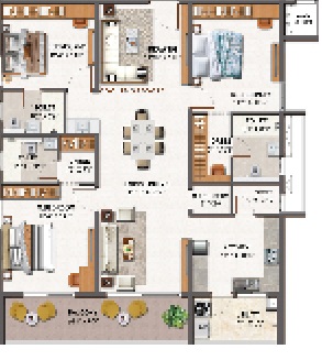 Internal Wall: Smooth putty finish with 2 coats of premium acrylic emulsion paint of reputed make over a coat of primer.