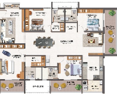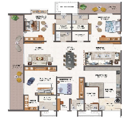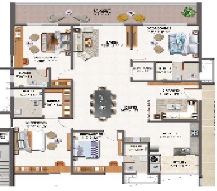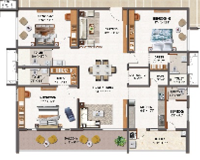 Inside the Flat: Smooth putty finish with 2 coats of premium acrylic emulsion paint of reputed make over a coat of primer.