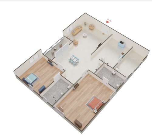 Bathrooms: Acid-resistant, anti-skid ceramic tiles of reputed make.
