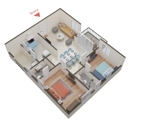 Internal Walls: Smooth putty finish with 2 coats of premium acrylic emulsion paint of reputed make over a coat of primer.