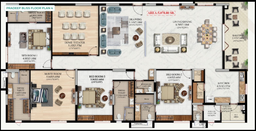 100% treated water through an exclusive water softening plant and separate Municipal water supply to kitchen.