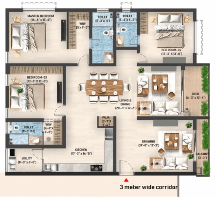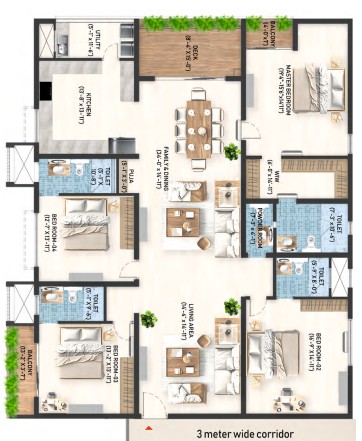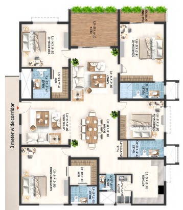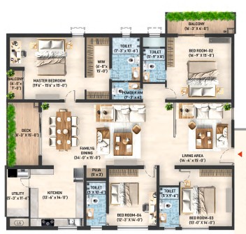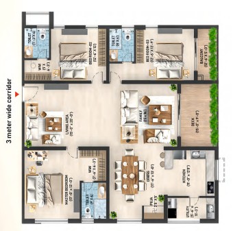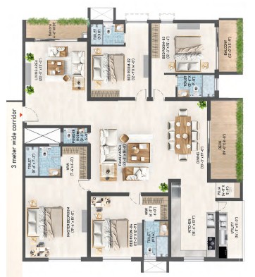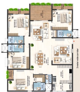 The leisure deck is available for relaxation and socialising with friends. The apartments are designed with unit sizes ranging from 2765 sq. ft. to 4205 sq. ft., making a wider space to live with fresh air ventilation for every refreshment. Every unit is an architectural marvel for an unparalleled living experience.
