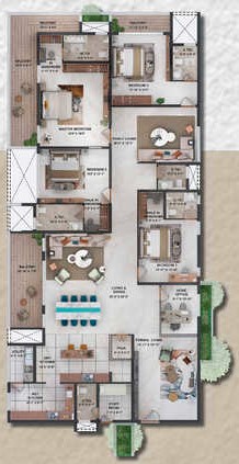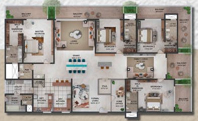 Rainbow Waters is for that rare resident wanting a home resonant with his or her bright lifestyle. The apartments here come in 4 and 5 BHK configurations and sizes between 4955 and 8001 sq. ft. These homes reflect an exceptional balance between functional and aesthetic considerations. Units are cleverly designed so that their residents will enjoy a delightful living experience, flaunting the use of high-tech finishes and huge windows that exquisitely showcase beautiful views beyond.