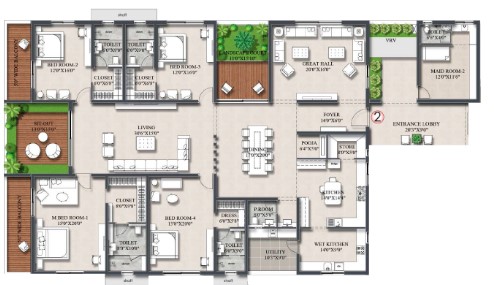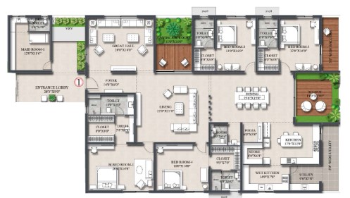 Designed to accommodate modular kitchen with all necessary service provisions.