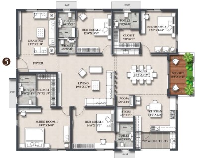 Electrical: Power socket for Hob, chimney, refrigerator, microwave oven, mixer / grinder in kitchen, washing machine / dishwasher in utility area Three phase supply for each unit and individual prepaid metres. Miniature Circuit Breakers (MCB) for each distribution board of reputed make Modular switches of reputed make. Provision of electrical sockets in common areas as per electrical design intent