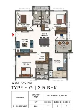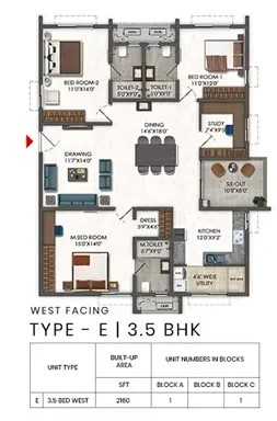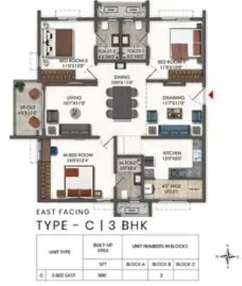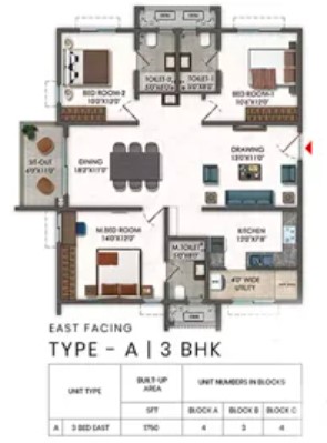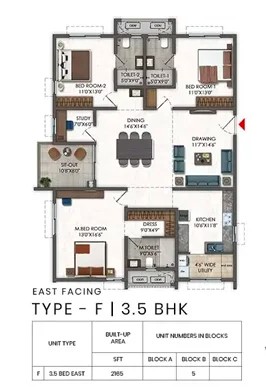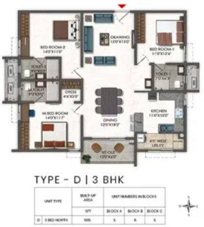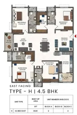 Power Outlets: For cooking range chimney, refrigerator, water purifier, microwave oven, mixer/grinders, dishwasher, and washing machine in utility area.