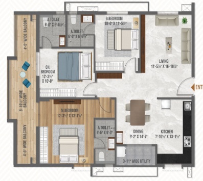 Deserving of the name, Risinia The Twinz is an assortment of high end apartments stretched across an area of three acres in one of Hyderabad's fastest-developing suburbs: Bachupally. This well-conceived project will have 555 2 and 3 BHK apartments shrouded in luxury, located in two majestic towers, each 15 floors high. Luxuriously spacious on the whole, the form of apartments is designed to let in the maximum possible light and air, sitting pretty from an area of 1295 square ft to 2055 square ft.
