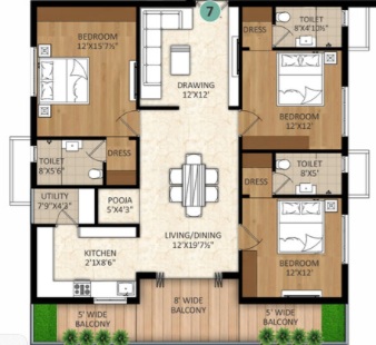 Power outlets for air conditioners in the living/drawing and master bedroom. 5 amps socket provision for fan and light in all rooms.
