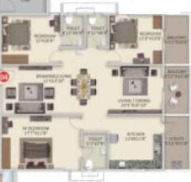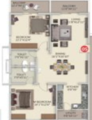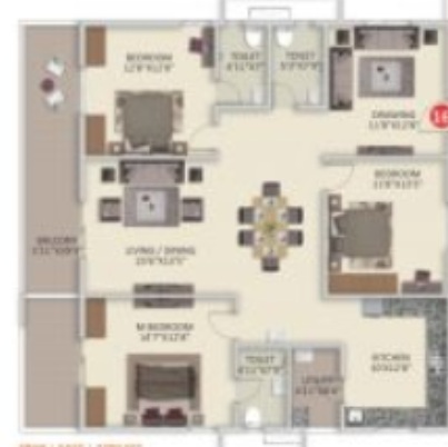 All Bedrooms & Kitchen: 800 x 800 mm Double Charged Vitrified Tiles of reputed make.