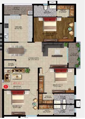 BALCONIES: Vitrified tiles of reputed make with matt finish.