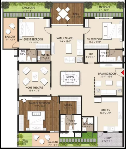 Unit sizes of the Sri Aditya Le Grandiose ranges from 2799 Sq.Ft .