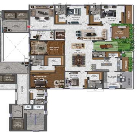 One Video phone in each apartment. Biometric door lock of Yale or equivalent make in each apartment. Home automation Lutron or Legrand for controlling lights at specific areas. Gas leak detector with shut-off valve. Meter readings with bill alerts.