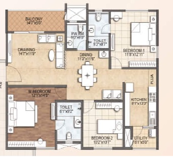 • All Balconies: Anti-skid vitrified / ceramic floor tiles of superior quality