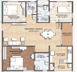 • Other Bedrooms, Drawing, Living, Dining & Kitchen: Vitrified floor tiles of superior quality
