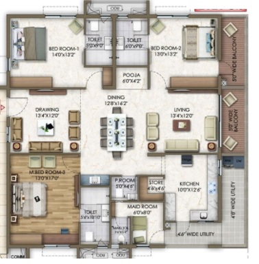 Provision for washing machine, dish washer & wet area for washing utensils etc.,