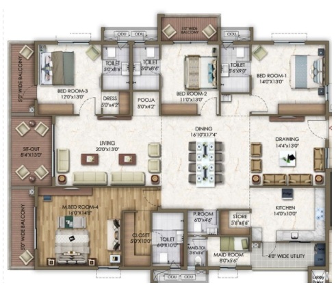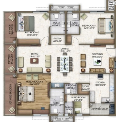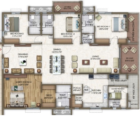 Provision for Air conditioning for living, drawing and all bedrooms with proper copper conducting, power supply and proper drainage outlet.