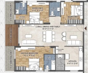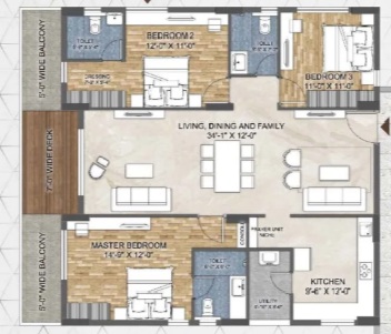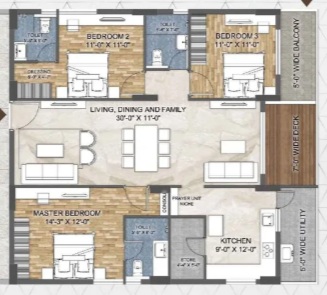 Every 3 BHK shall be allotted 2 car parking.