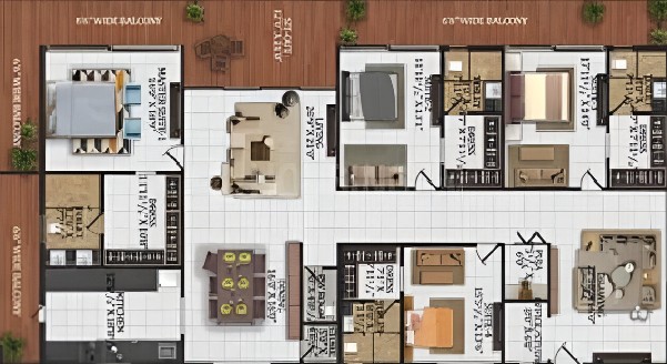 LIVING BALCONIES: Granite/imported tiles as per architect design.