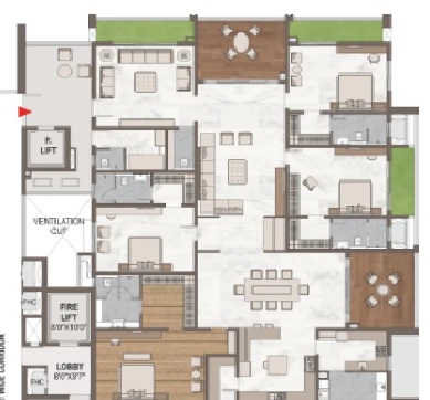 Designed to accommodate modular kitchen with necessary services provisions.