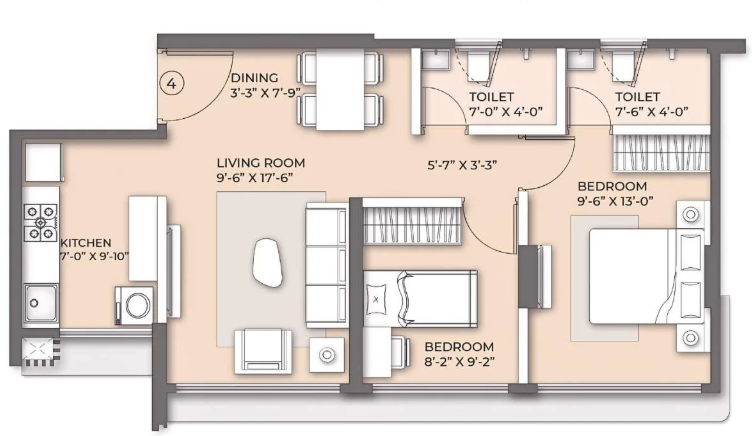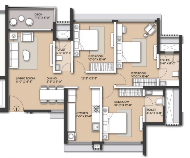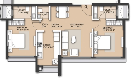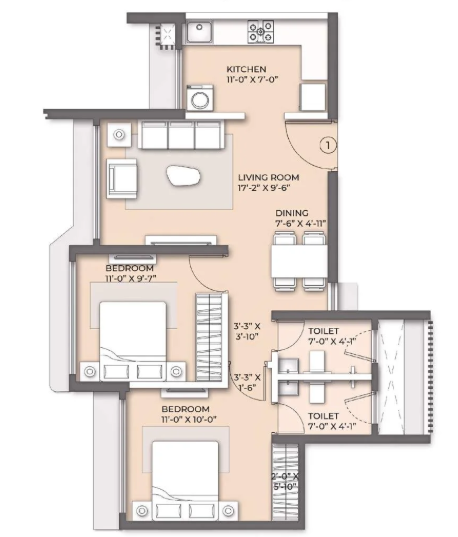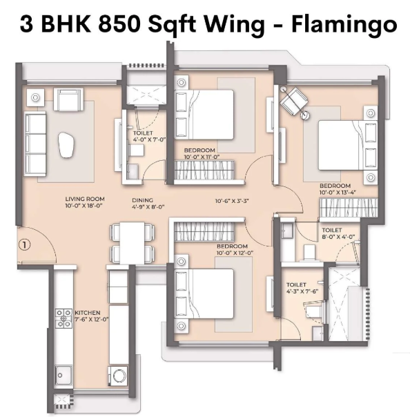 Unit sizes of the Arkade Nest ranges from 570 - 1007 Sq.Ft .