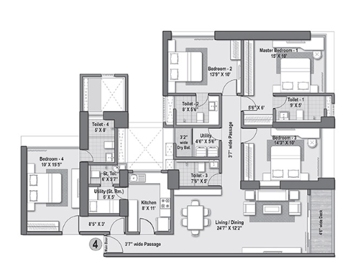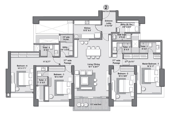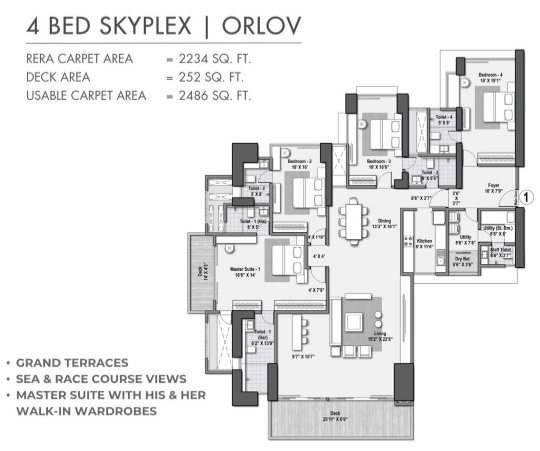 Unit sizes of the Raheja The Riviere ranges from 1268 - 3687 Sq.Ft .